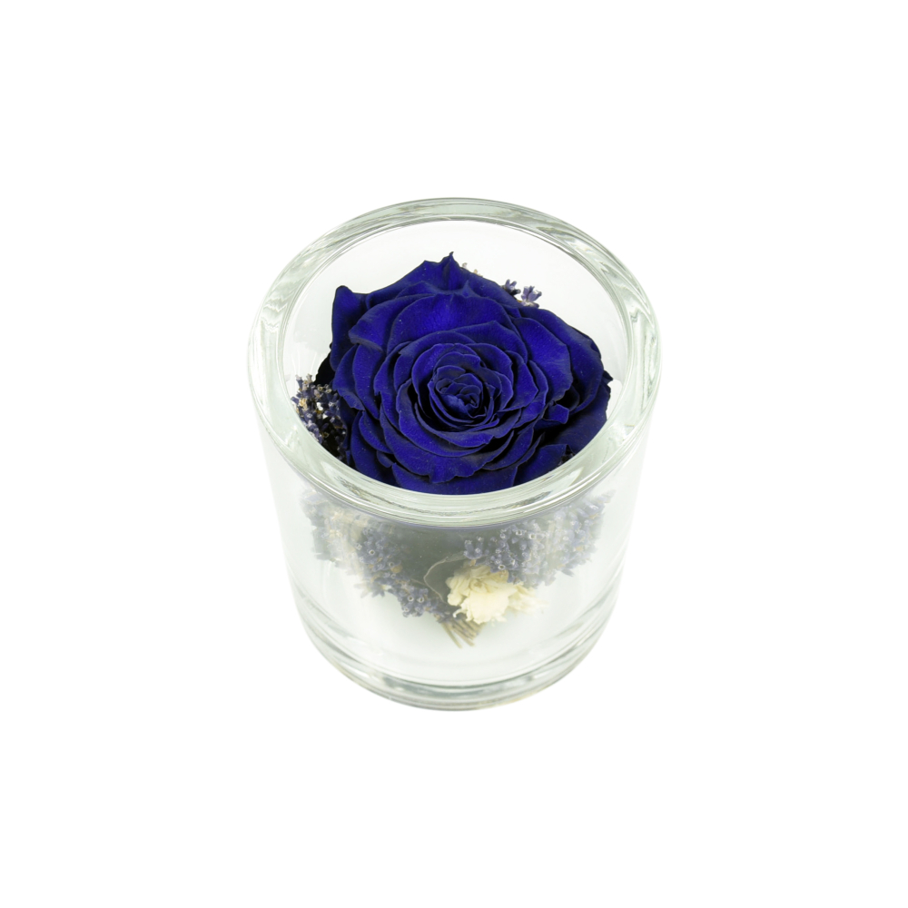 This magnificent and striking gift is created using an extra-large preserved Rose and freeze-dried flowers arranged in a clear glass container and finished in a gift box tied with Flowerstalk ribbon for that final, special touch.
